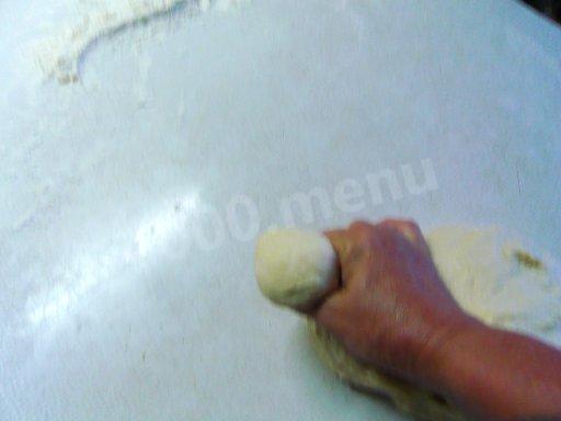 rozwałkuj każdy w warstwę, pokrój na cztery kwadraty.