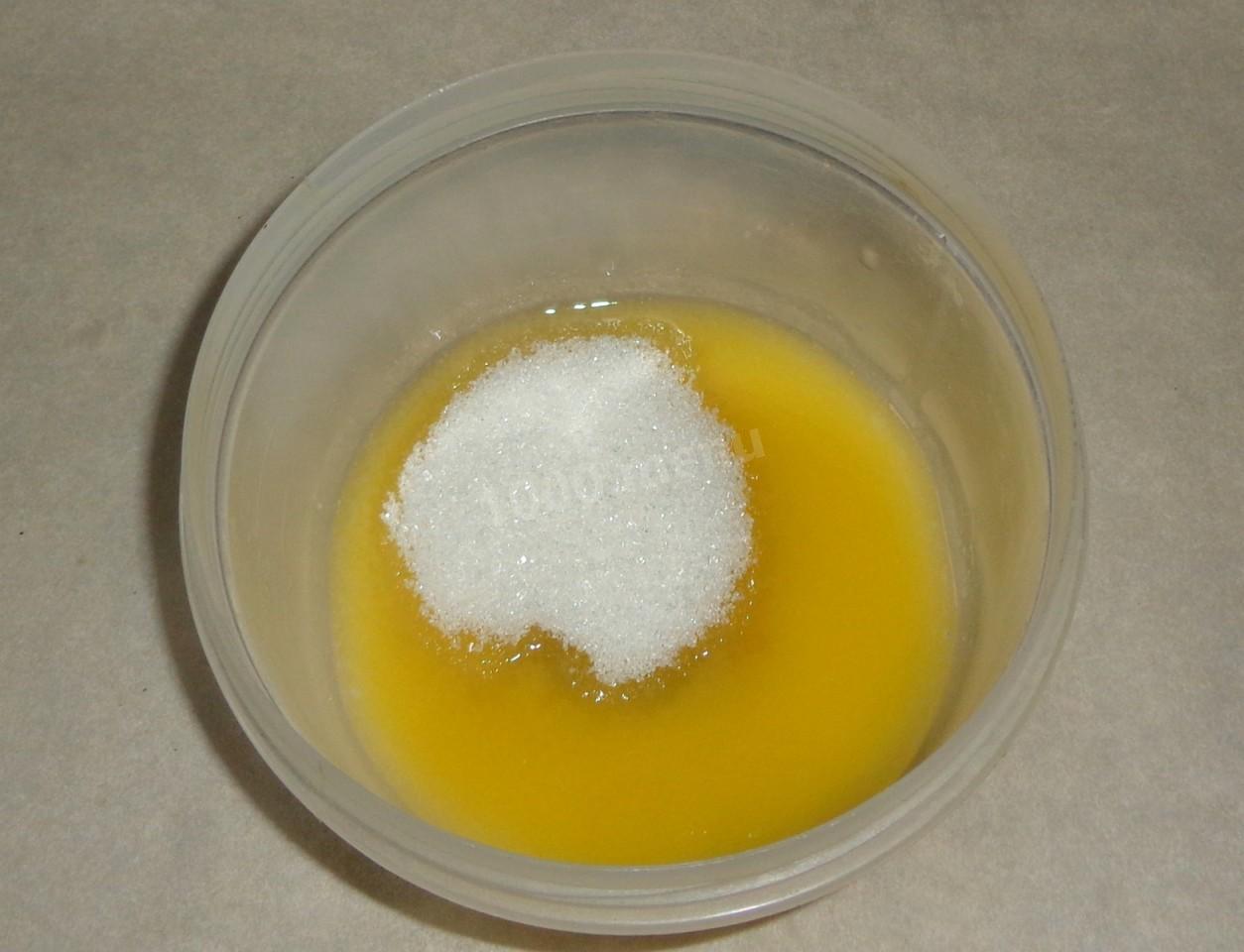 Przygotuj nadzienie. Rozpuść masło w kuchence mikrofalowej (przeczytaj instrukcje dotyczące techniki) lub w łaźni wodnej. Aby to zrobić, weź dwa pojemniki o różnych średnicach. Wlej wodę do większego rondla, podpal. Ustaw miskę o mniejszej średnicy na wierzchu. Wyślij do niego kawałki masła. Po stopieniu wyłącz ogrzewanie. Schłodzić masło, dodać cukier lub substytut cukru, który nie boi się obróbki cieplnej. Wymieszać.