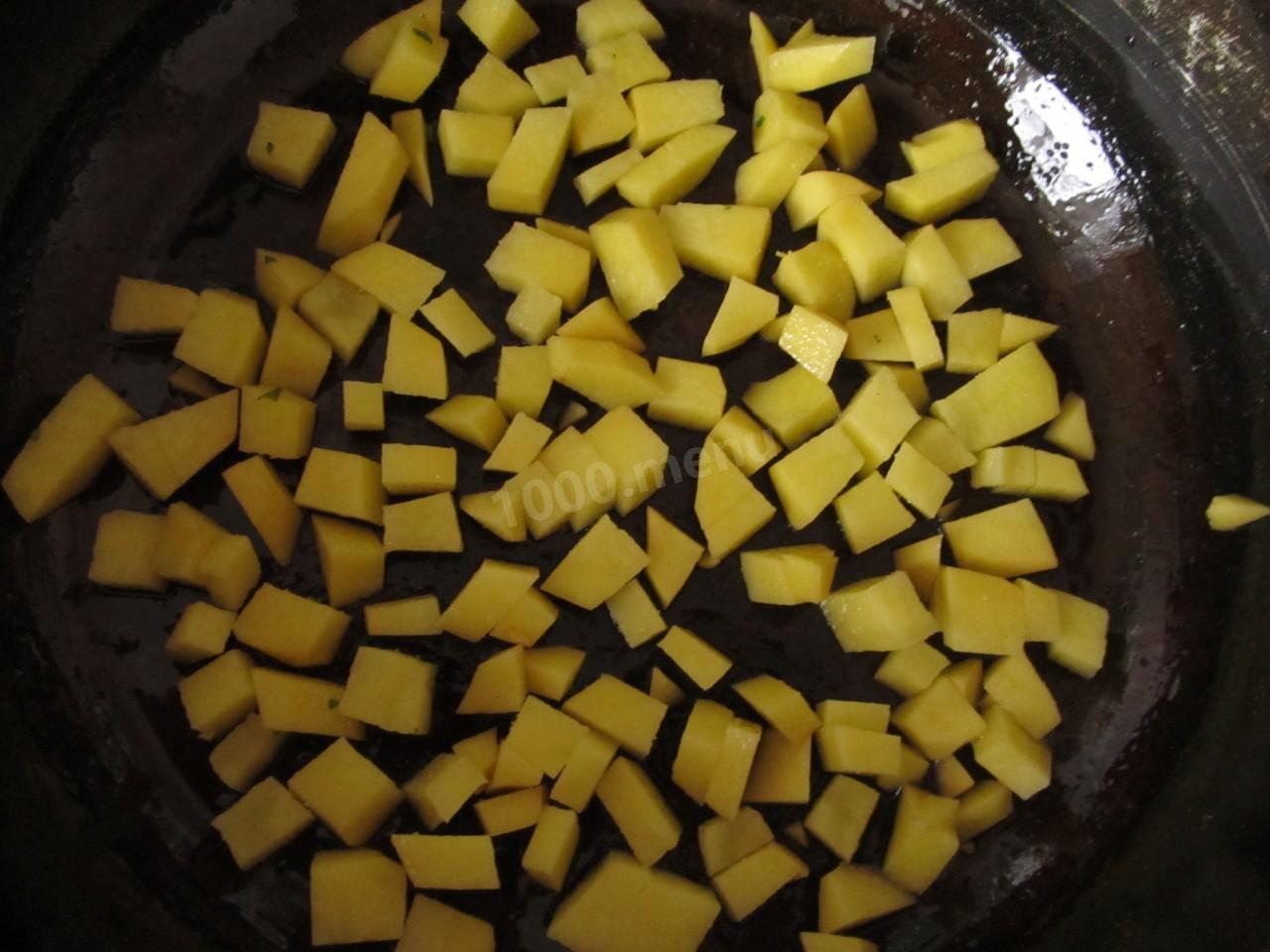 Obierz ziemniaki, pokrój w drobną kostkę i włóż do natłuszczonej formy.