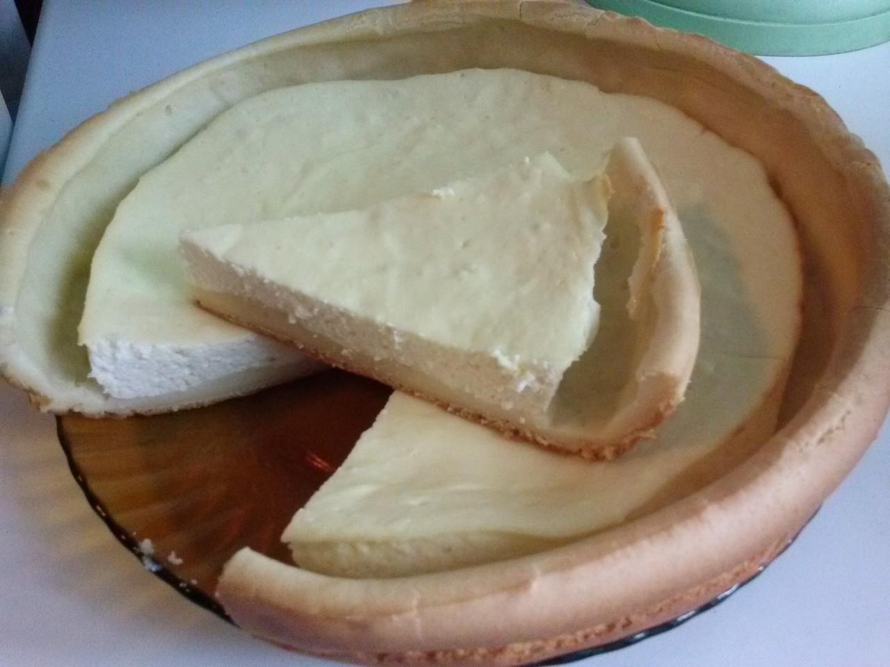 Piec czterdzieści minut, aż ciasto się zrumieni, ponieważ twaróg nie zmienia koloru. Podczas gdy sernik stoi w piekarniku, znacznie się powiększa, a po ochłodzeniu spada, a twaróg pozostaje w tyle za ciastem (na zdjęciu widać). To wszystko, możesz podać na stole.