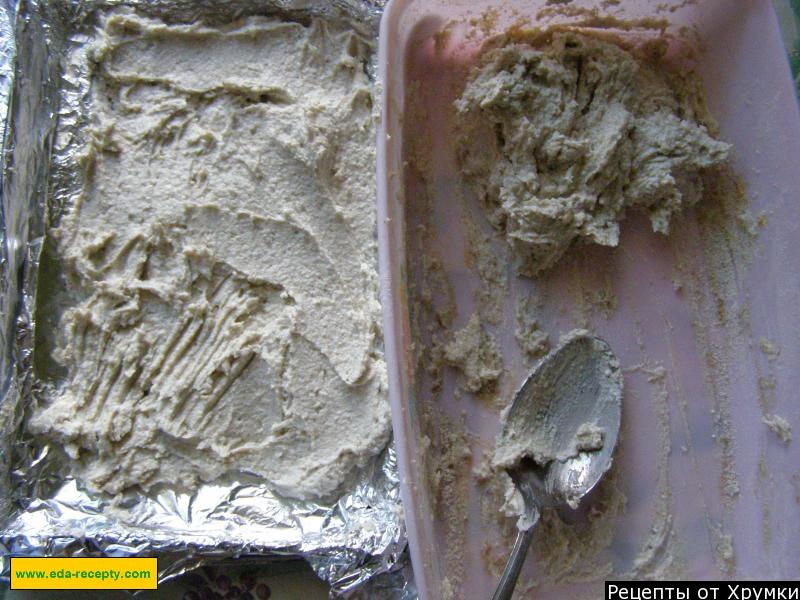 jeśli to konieczne, nasmaruj formę (mam silikonową) i rozłóż połowę powstałej masy.