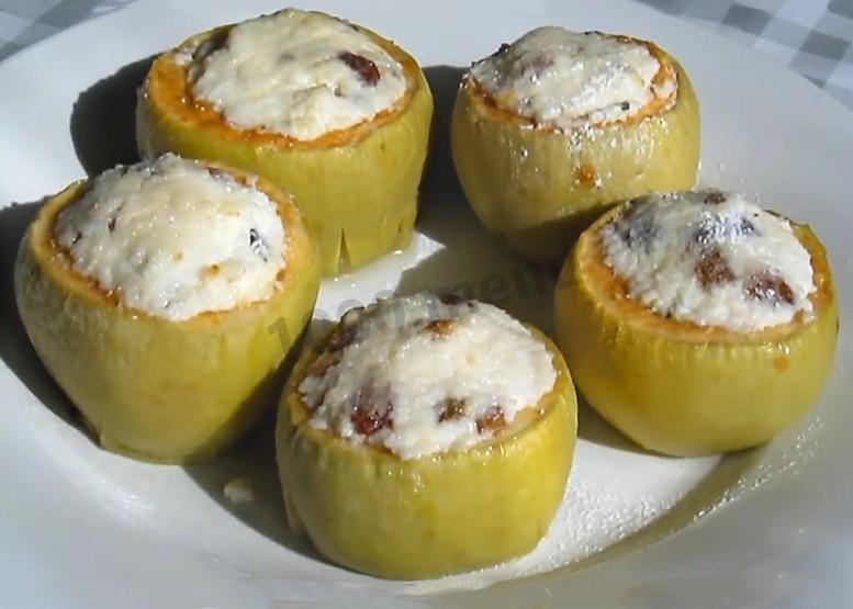 ostry ostrożnie wyciąć rdzeń jabłek, aby nie przebić jabłek. Napełnij je masą twarogową. Włóż nadziewane jabłka do miski Multicooker, piecz je w trybie "Pieczenie" lub "Multipowar" przez pół godziny.