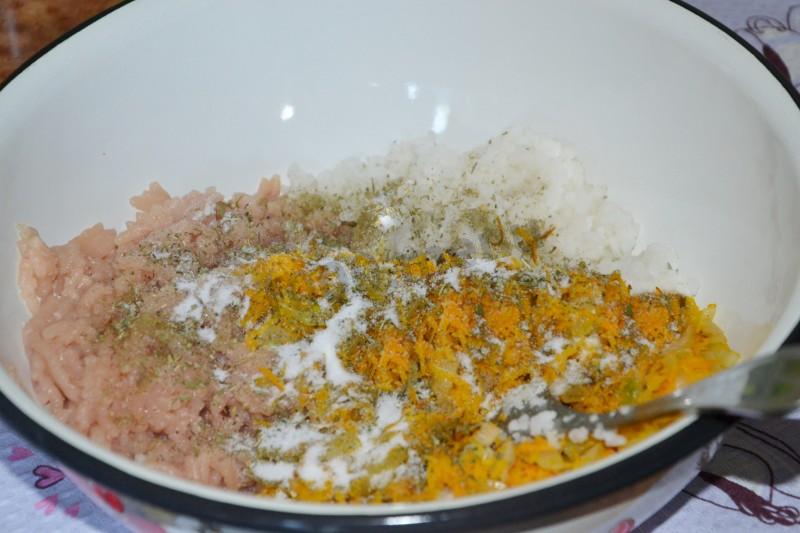 W misce połącz mięso mielone, ryż, tosty. Sól-pieprz do smaku. Wszystko dobrze zagniatamy.