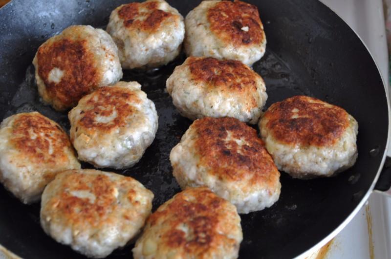 Wlej oliwę z oliwek na rozgrzaną patelnię, smaż kotlety na dużym ogniu na złoty kolor z obu stron