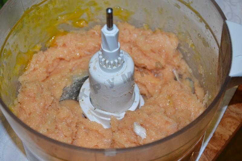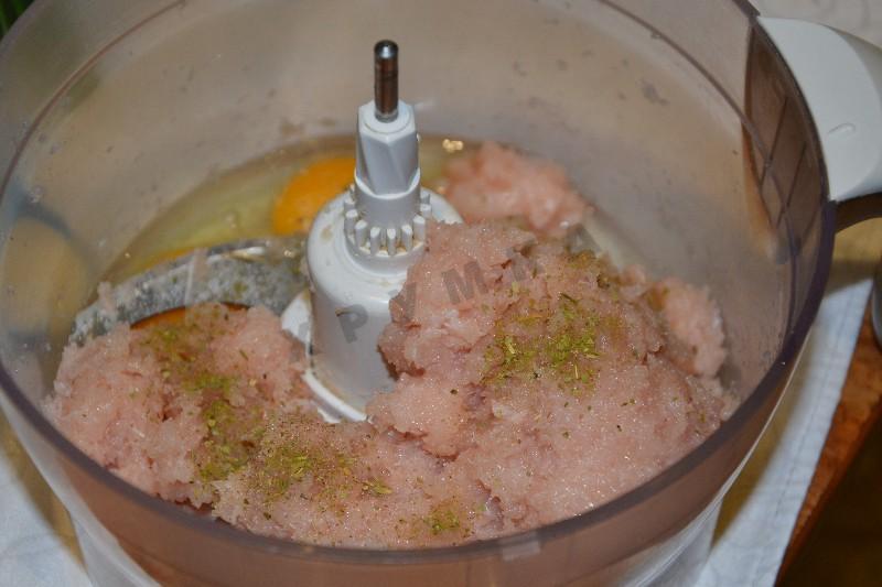 Pokrój filety na kawałki i posiekaj, jak chcesz. Użyłem robota kuchennego, przystawki & quot; metalowy nóż & quot;.