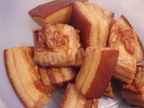 aby uzyskać dodatkowy smak, zgodnie z naszym przepisem gotowe kawałki są posmarowane pokruszonym czosnkiem i posypane czerwoną papryką.