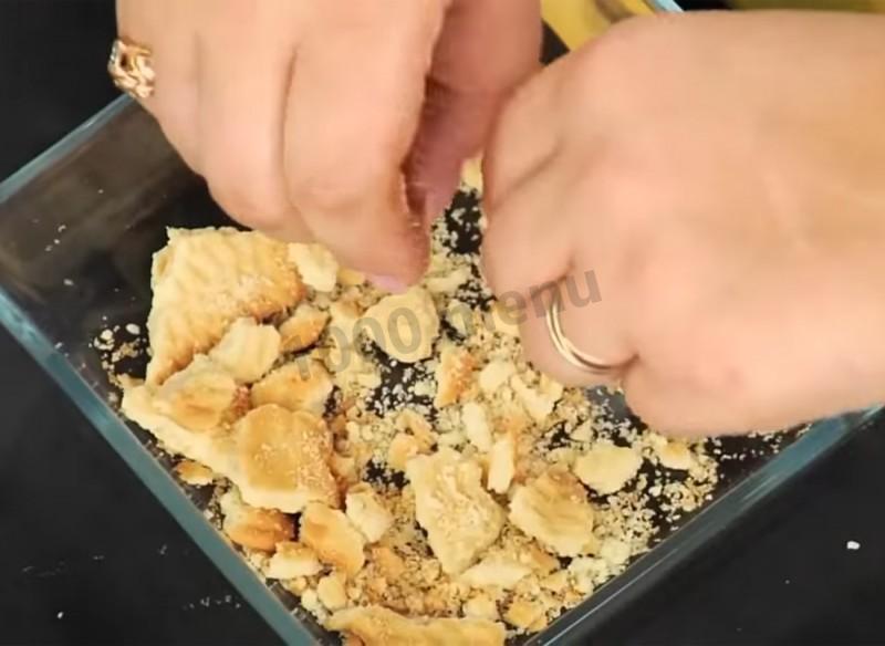 W pokruszonych ciasteczkach włóż miękkie masło i trochę zmiel.