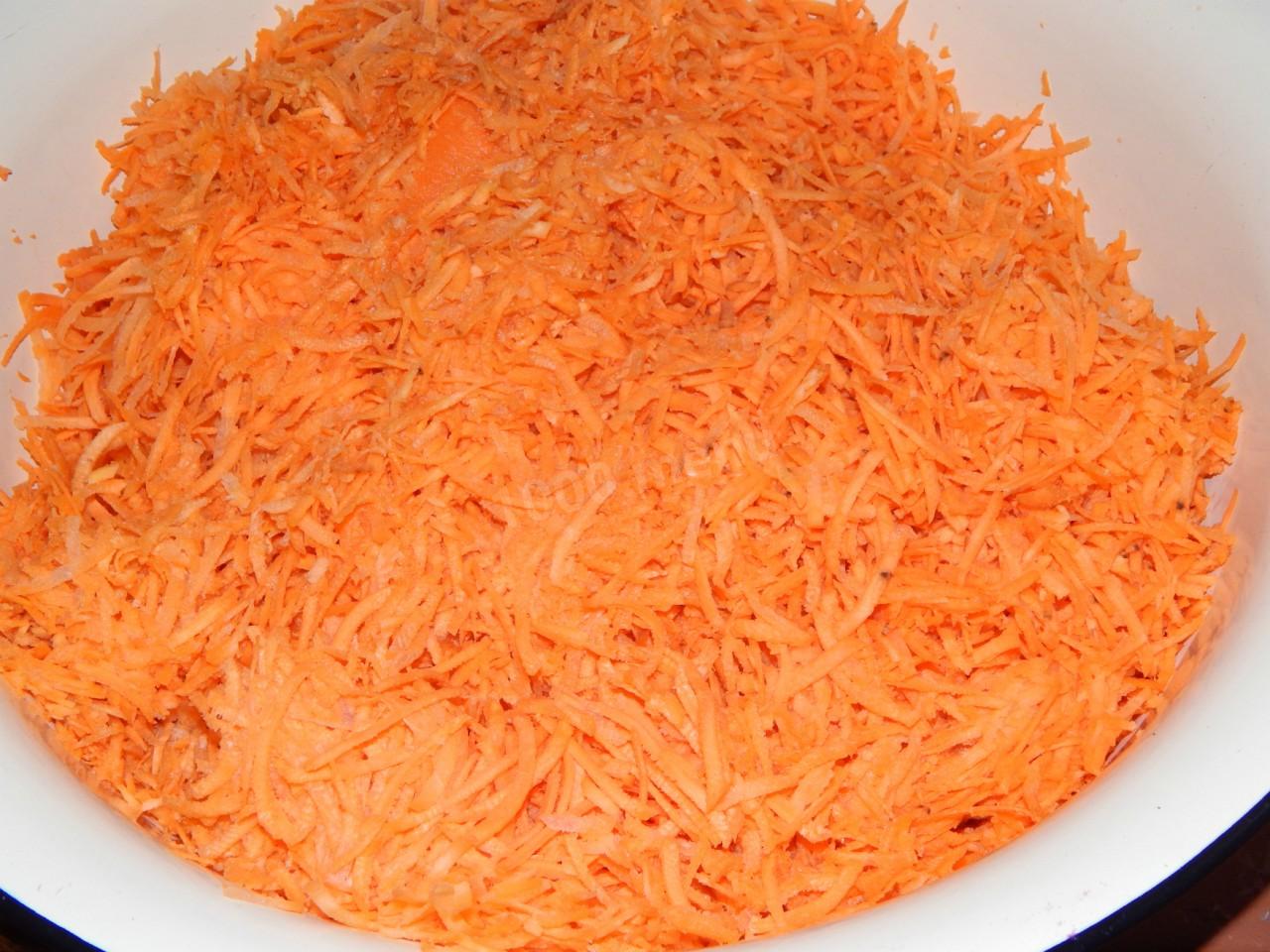 Marchewki czyścimy, jeśli używamy młodych owoców, skórę można zetrzeć szczotką. Trzy marchewki na grubej tarce lub użyj kombajnu lub innej techniki, aby szybko posiekać marchewki.