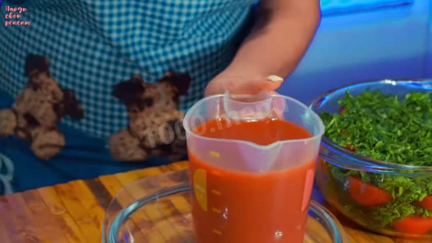 Dobrze wymieszaj wodę z przecierem pomidorowym lub sokiem.