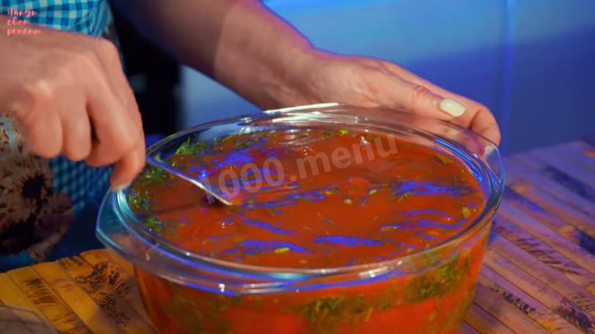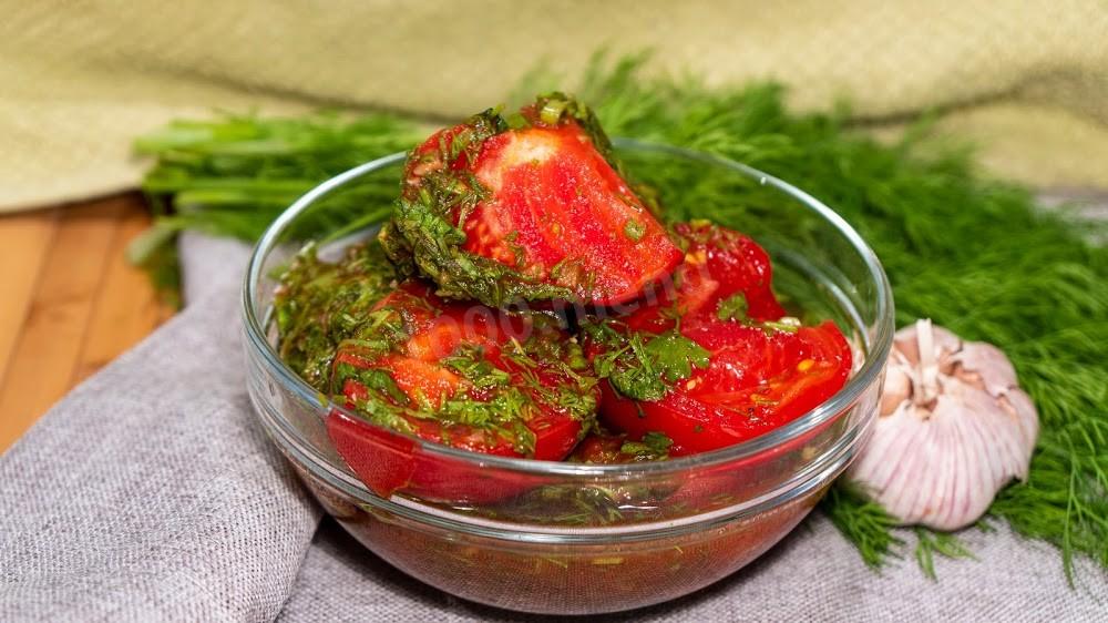 wspaniała przystawka pomidorowa z czosnkiem i ziołami w polewie pomidorowej. Cóż, bardzo prosty przepis na świąteczną przekąskę z pomidorów z czosnkiem przynajmniej na obiad przynajmniej na lunch! Smacznego!