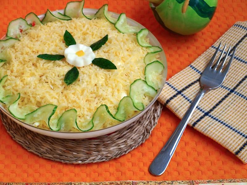 7. Ostatnim etapem będzie twardy ser, który jest również trzy na tarce. Udekoruj gotową sałatkę, używając wyobraźni :)