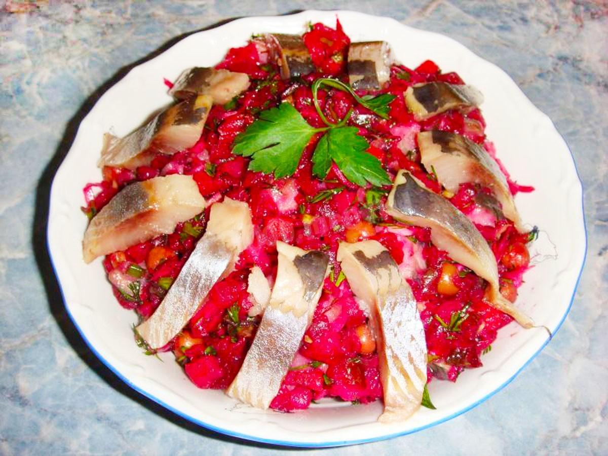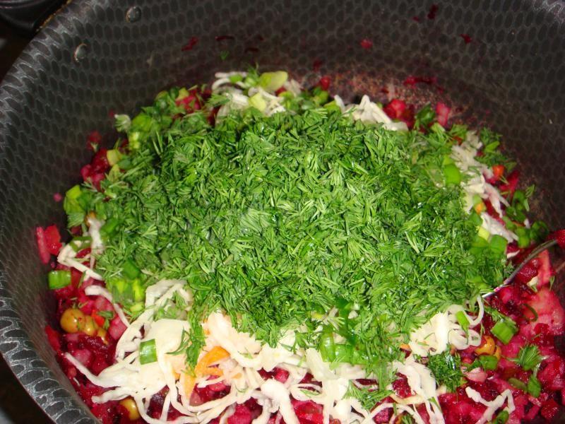 Dodaj zielenie. Mieszać. Sałatka gotowa! Podczas serwowania można go udekorować natką pietruszki lub plasterkami cytryny. Mój przyjaciel powiedział mi, jak zrobić pyszny vinaigrette ze śledziem. To u niej z wizytą po raz pierwszy spróbowałem tego dania, a teraz postanowiłem podzielić się z Tobą przepisem.