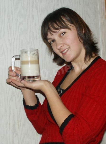 w tym przypadku koktajl będzie miał inny kolor: biały na dole, a brązowy na górze.