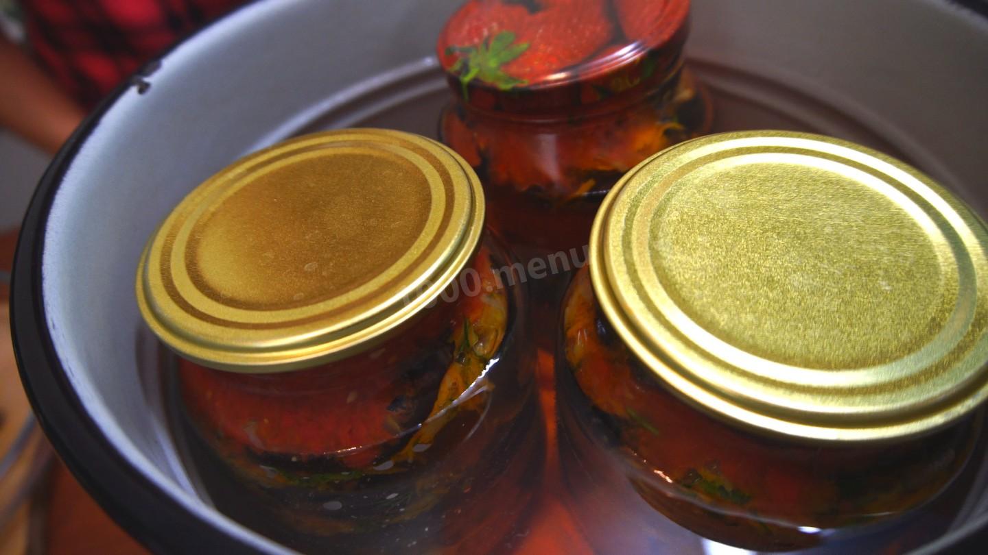 Wlej chochlę soku i łyżkę kalcynowanego oleju roślinnego na dno słoika, a następnie rozłóż bakłażany, następną warstwą jest pieczenie. Naprzemiennie napełniamy warstwy sokiem.