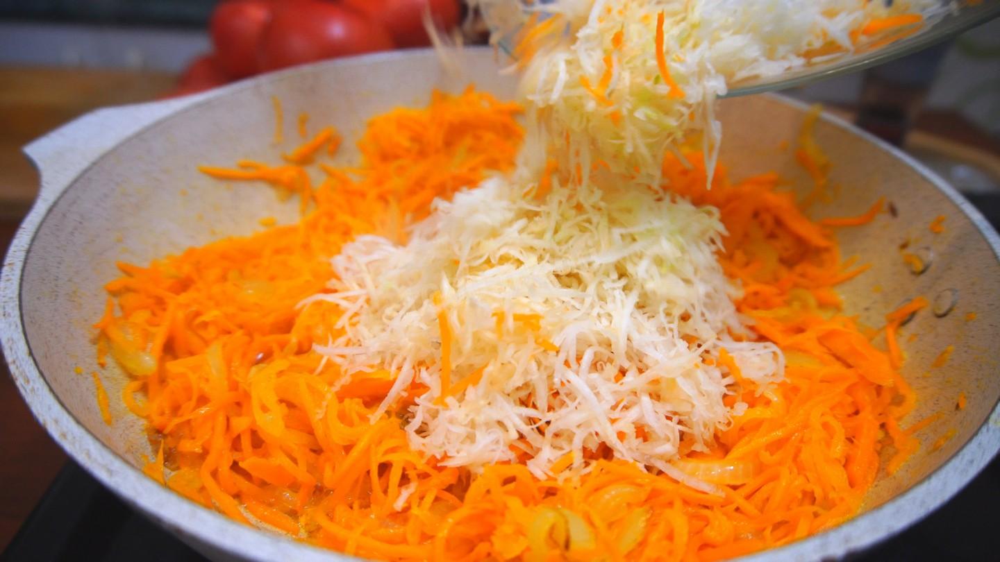 Rozłóż korzeń do smażenia i gotuj przez kolejne 5-7 minut.