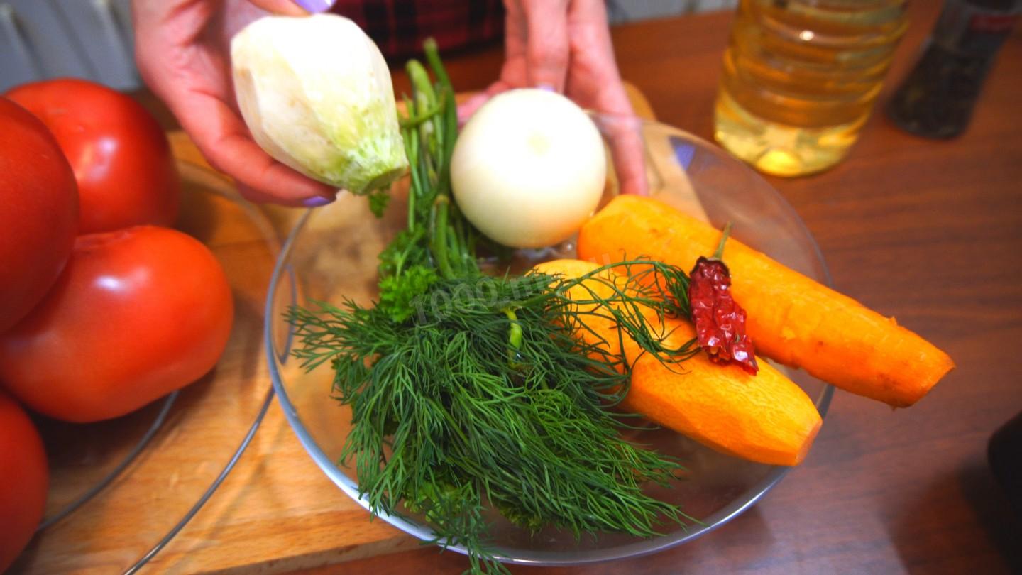 Dobrze myjemy warzywa i usuwamy łodygi z bakłażana i pomidora.