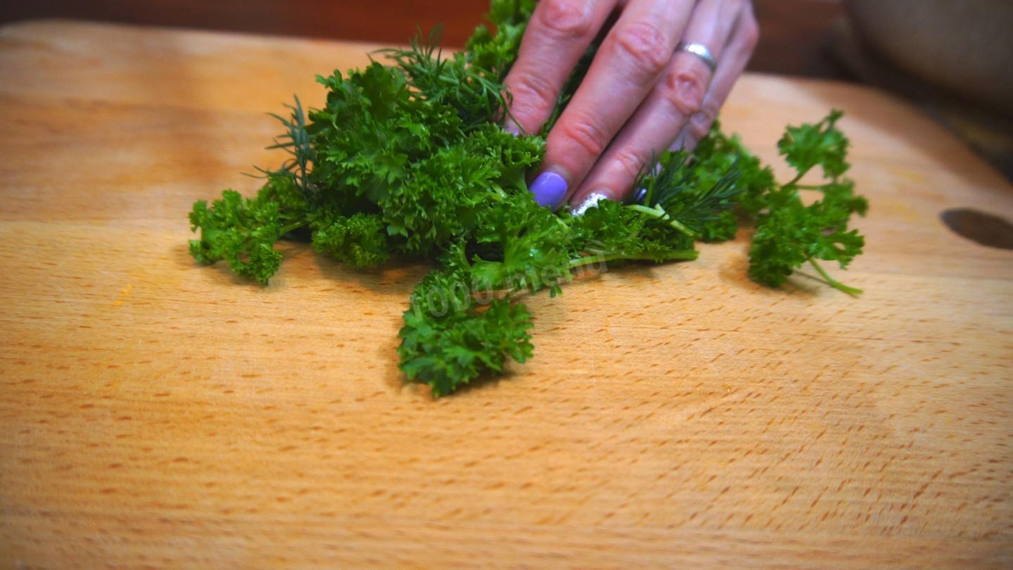 Posiekaj natkę pietruszki i koperek.