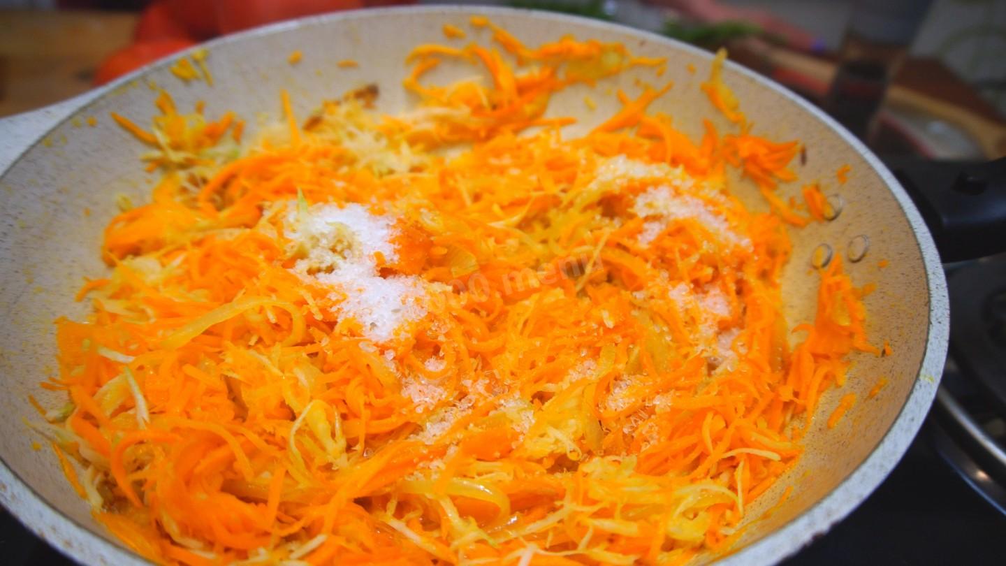 Dodaj do cebuli i smaż dalej, aż marchewki będą gotowe.