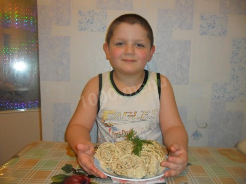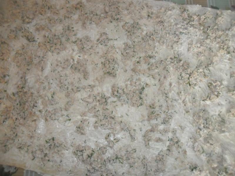 2. Drobno posiekaj koperek, Dodaj do fileta z kurczaka, dodaj 150 g majonezu, wymieszaj. Nadzienie jest gotowe.