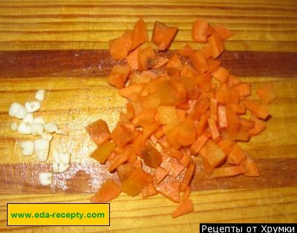 aby przygotować zupę, przygotuj warzywa. Obierz ziemniaki, pokrój w kostkę. Posiekaj marchewki w drobną kostkę, zmiażdż czosnek, pokrój por w plasterki. Rozmrażamy kiełbaski, a także kroimy w kółka.